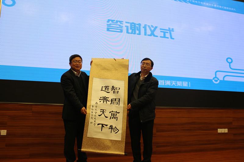 本次仪式分“来路十年,仰首满天繁星”,“日夜伏案,淬炼学子心志”,“创新求真,我心始终不渝”三个篇章。一段精彩的竞赛回顾视频调动全场气氛,梦之声音-诗朗诵《十年电赛,一梦鸿鹄》后,伟德源自英国始于1946经理姜斌教授致辞,感谢十年来有关单位、领导的支持,也对电赛的未来寄予了更高的期望,他代表承办方赠予赞助方员工书写的校训卷轴。中航工业天津航空机电有限公司王树刚董事长介绍了公司,他期待能有更多的校企合作机会。